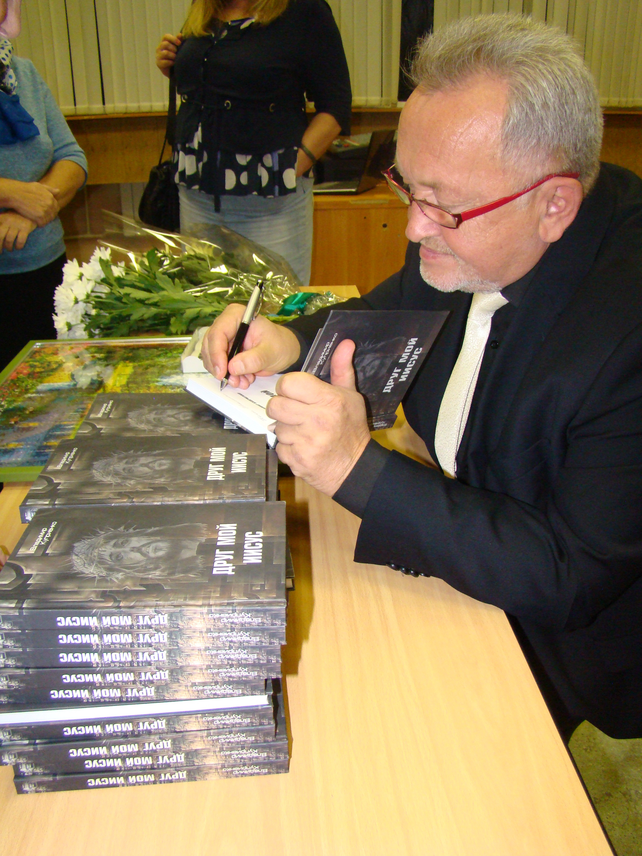 Разговор о новой книге «Друг мой Иисус» сопровождался поздравлениями от коллег писателей, журналистов, издателей: Владислава Лецика, Станислава Сахончика, Александра Бобошко, Павла Савинкина, Александра Маликова, Владимира Теплякова, Гульчеры Быковой, Валентины Кобзарь, Людмилы Ковригиной. Автору было сказано много приятных слов: «солнце амурской прозы», «друг губернаторов и Иисуса», «поднялся на новую высоту» и др.
