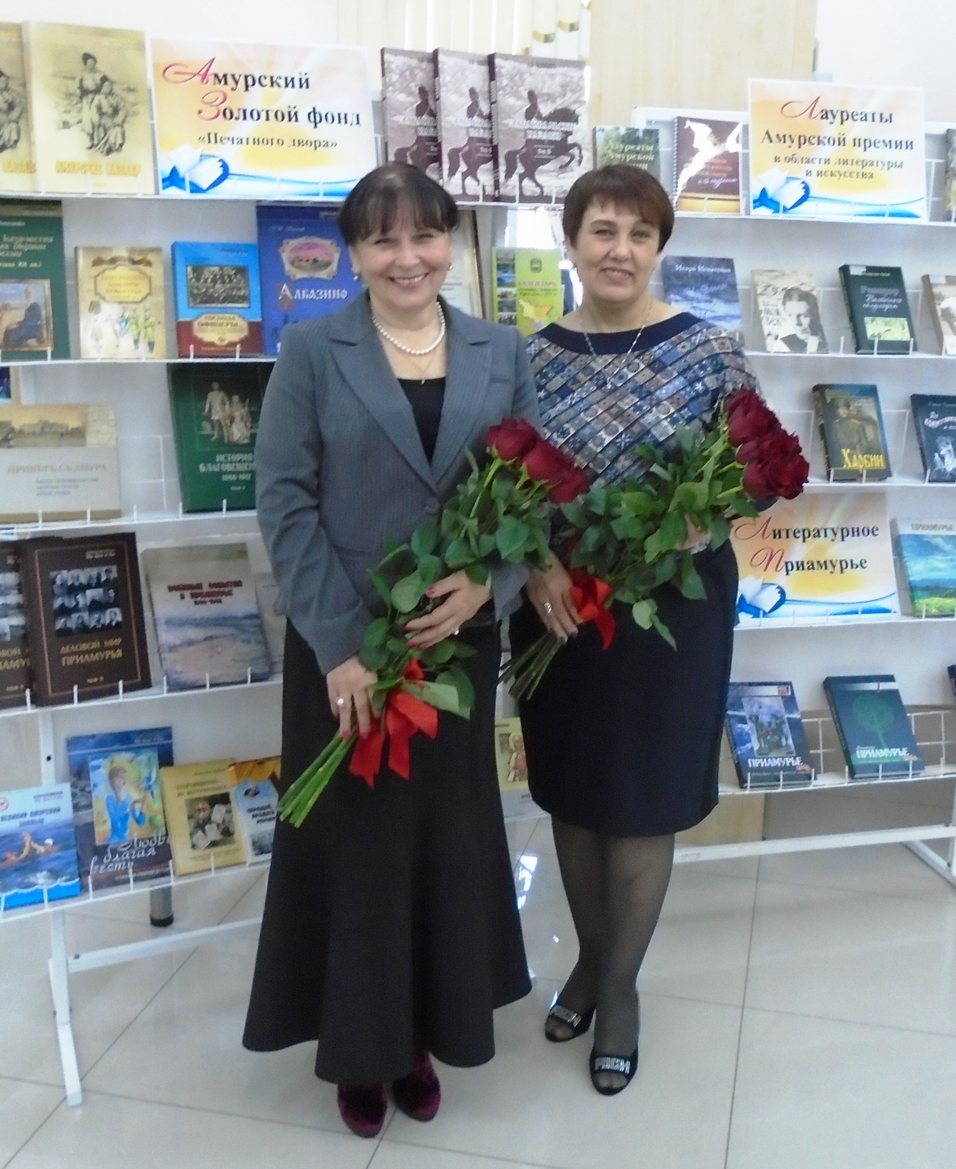 9 декабря в Амурской областной детской библиотеке состоялась встреча Сергея Вадимовича Степашина, президента Российского книжного союза, Александра Александровича Козлова, губернатора области с амурскими авторами, сотрудниками библиотек. Сергей Степашин вручил Благодарственное письмо Российского книжного союза директору Амурской областной научной библиотеки им. Н.Н. Муравьева-Амурского Наталье Долгорук за активное участие в 2017 году во Всероссийском конкурсе «Самый читающий регион». За большие заслуги в развитии отечественной культуры и искусства и многолетнюю плодотворную деятельность глава региона вручил руководителю литературно-драматургической части Амурского областного театра драмы Нине Николаевне Дьяковой Почетную грамоту Президента России. Для пополнения фондов Амурской областной детской библиотеке был передан и сертификат на приобретение 500 книг.