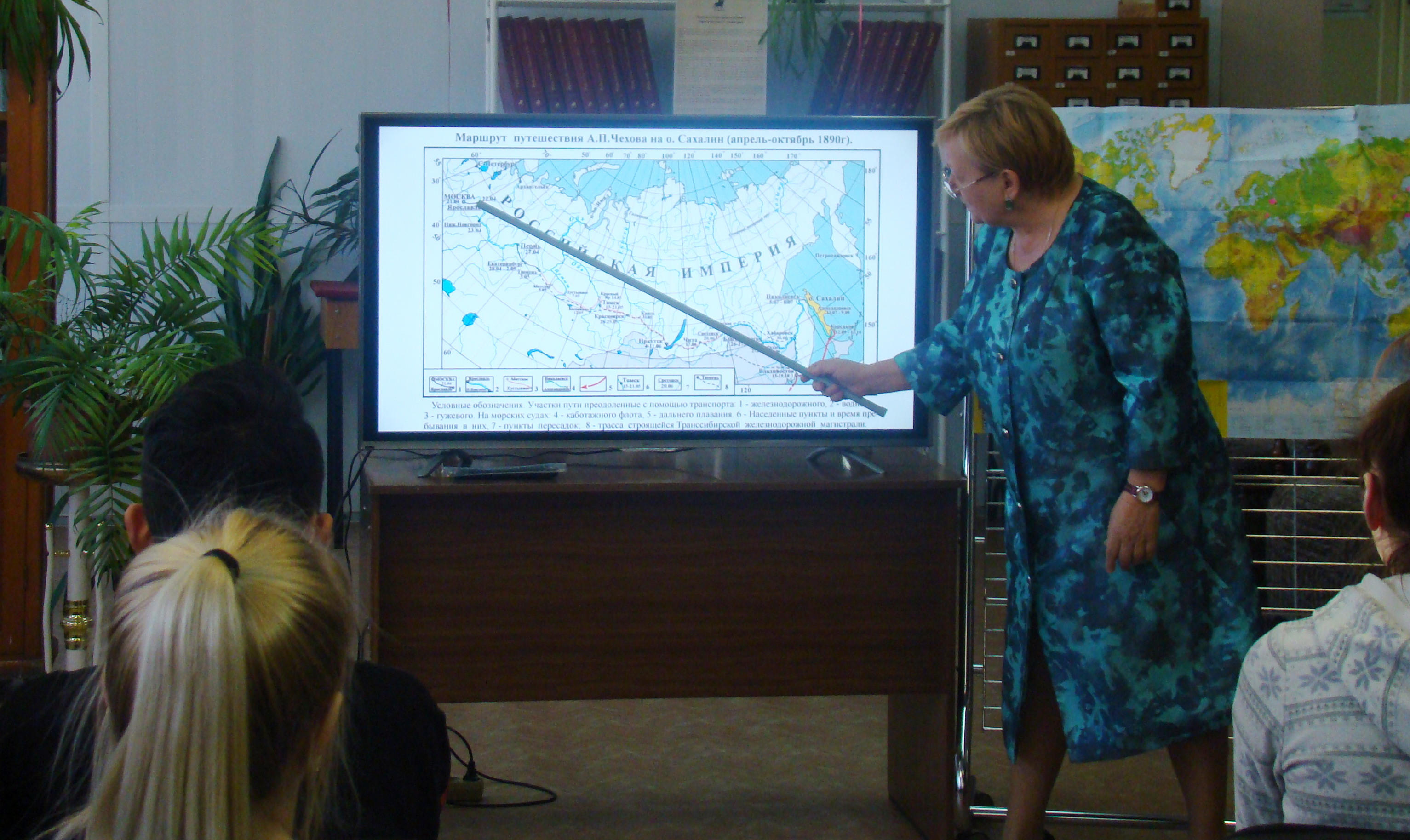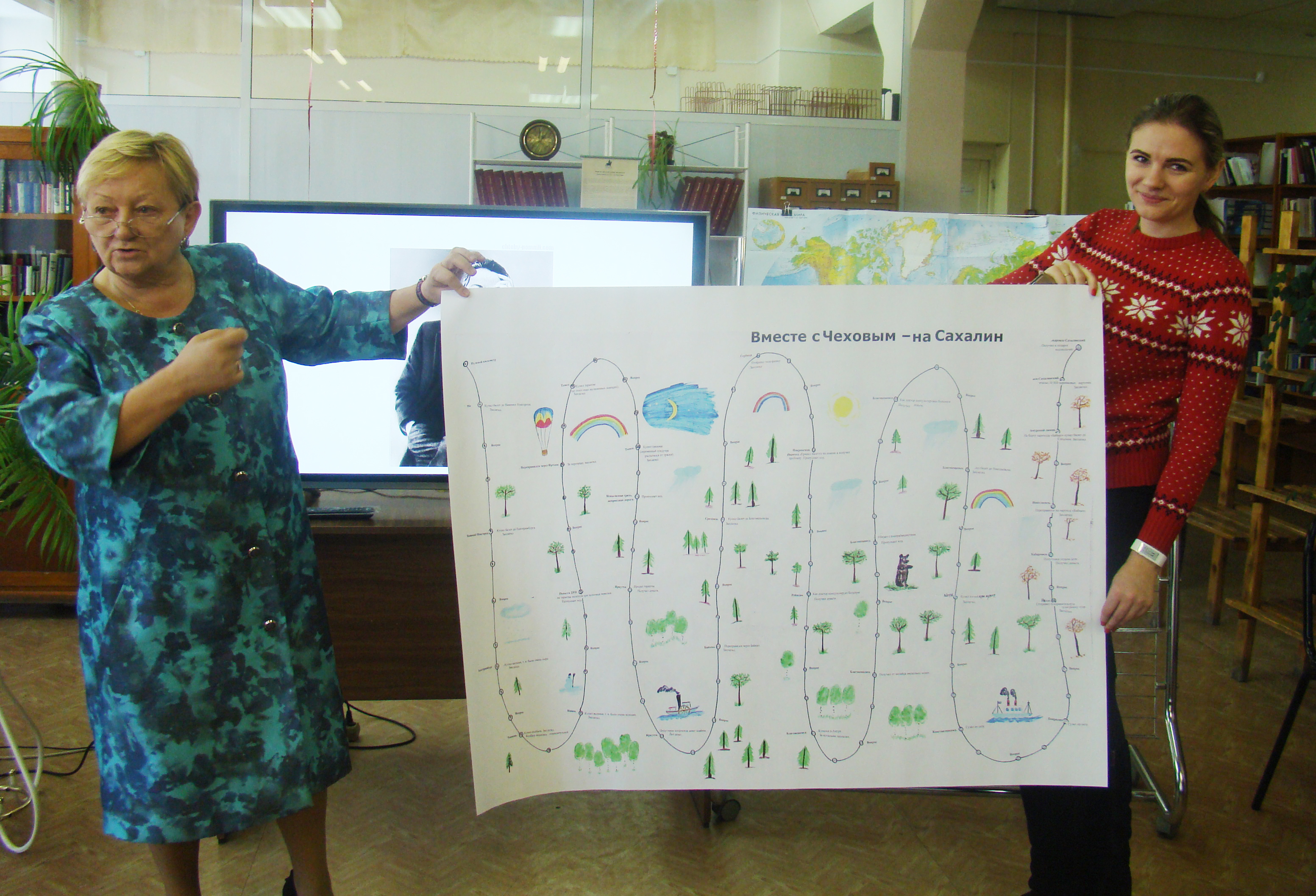 Беседа, построенная на диалоге с аудиторией, сопровождалась демонстрацией слайдов старого Благовещенска и достопримечательностей на пути следования А. П. Чехова от Москвы до Сахалина, обращением к книгам А. П. Чехова, изданным еще при его жизни, показом на географической карте маршрута писателя.