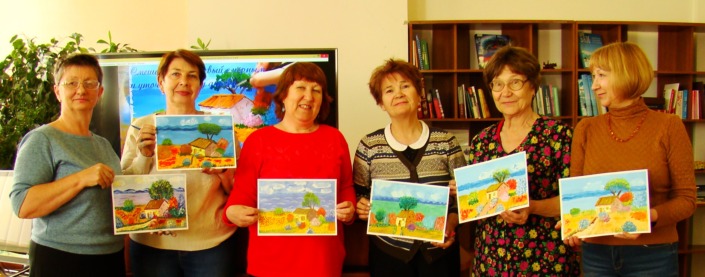 На очередном летнем занятии рисовальщицы изображали Прованс – яркие краски, многоцветье, жизнерадостность – все, что присуще юго-востоку Франции. Огрехи в технике рисования искупались удовольствием от полученного результата.