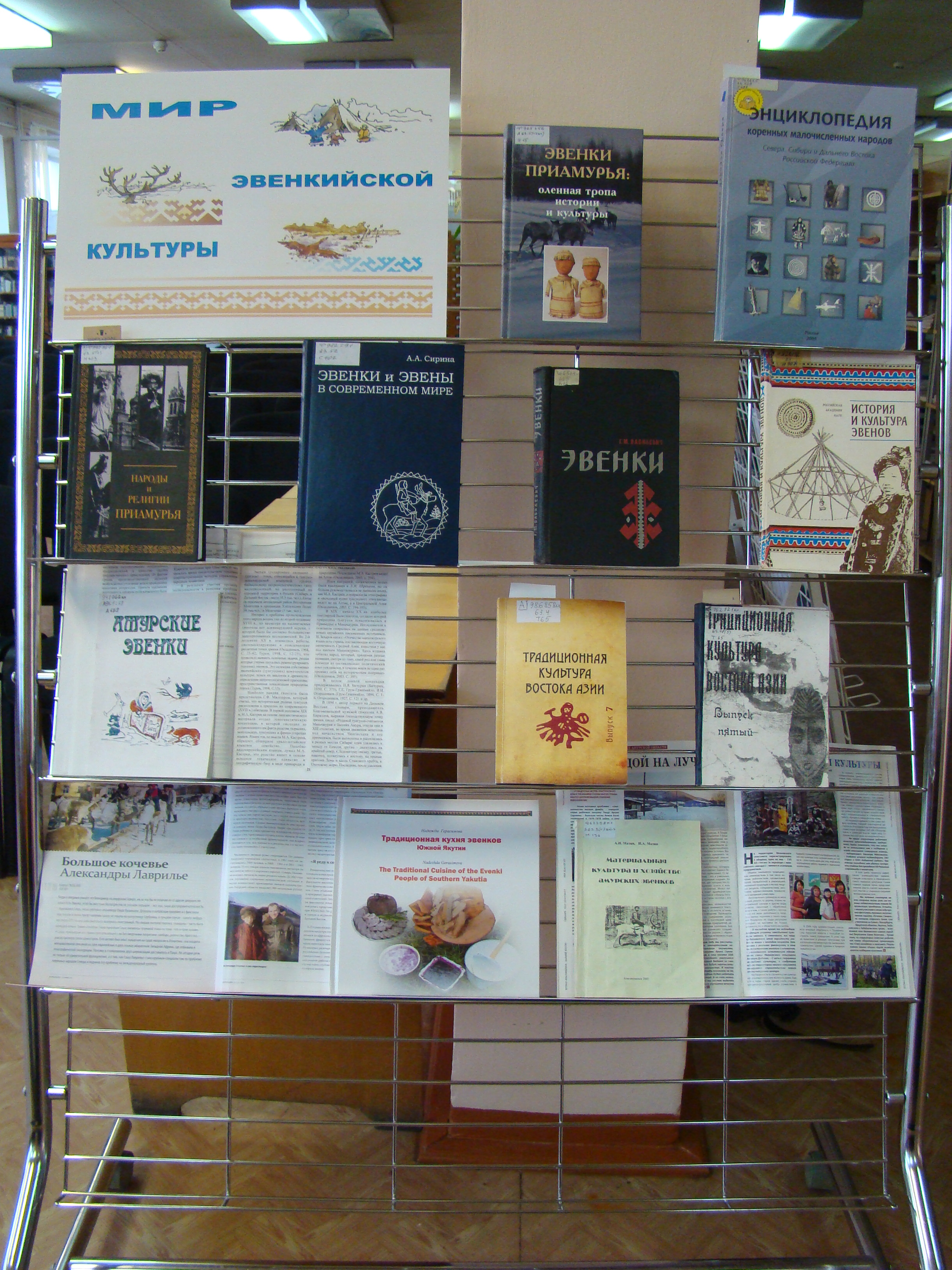 Зеркальной проекцией исторического пути национального эвенкийского сообщества является художественная литература. На выставке эвенкийскую литературу представляют книги Николая Абоимова, Лидии Тарской, Галины Варламовой.